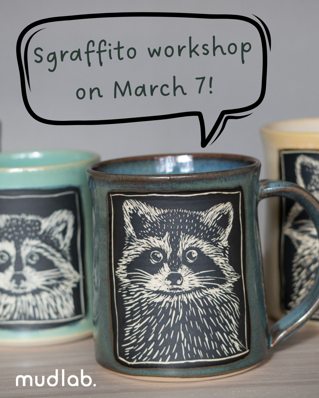 I’m teaching a sgraffito (carving clay) workshop at Mudlab in East Vancouver on March 7. It’s a beginner friendly workshop on my favourite technique. Come learn! Registration via Mudlab’s web.